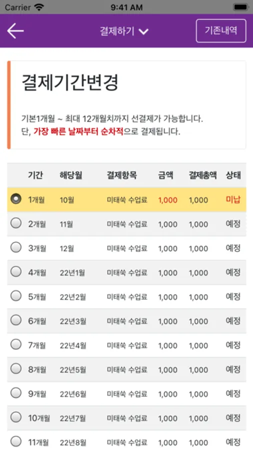 - 학부모들이 직접 앱을 통해 원비결제를 할 수 있는 메뉴를 제공합니다.