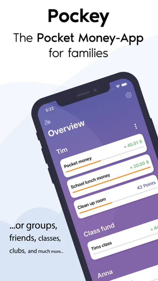 Even though Pockey was developed by parents for parents and children, the app is of course not limited to pocket money. Pockey can just as well be used to manage class funds, the household book of the shared flats, the money in the club, etc.