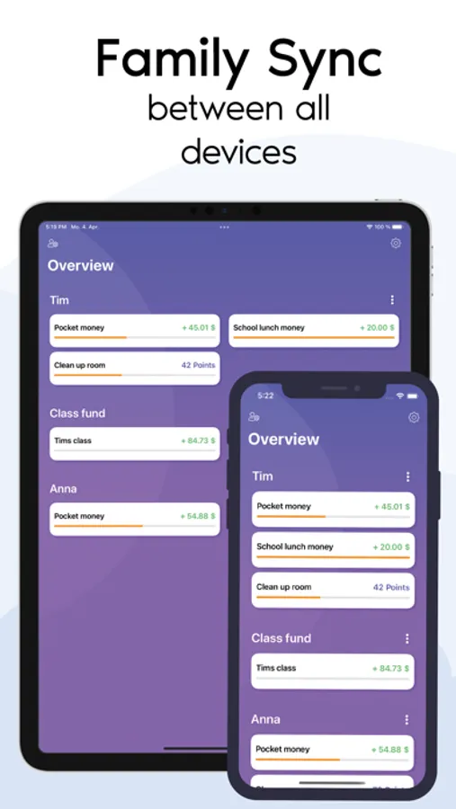 Individual accounts can be set up for each child. Pocket money is managed, as are reward points for cleaning up or helping around the house. In their role as "bank", parents can add new entries. Of course, the children cannot change the accounts themselves, but can only see what their current account balance is.