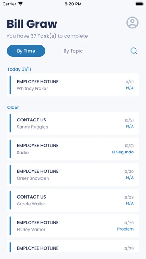 Submissions can be displayed in chronological order or sorted by Topic.