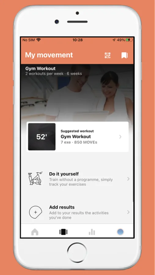 MY MOVEMENT: What you’ve chosen to do: here you will find your programme, classes you’ve booked, chal-lenges you’ve joined and all the other activities you’ve chosen to do at your facility