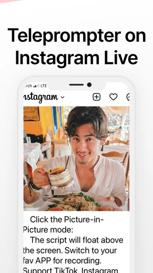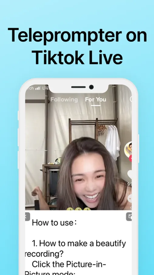 The script will float above the home screen. Support Instagram, TikTok, Facebook for live streaming.