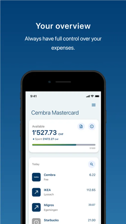 The Cembra app is ideal for all Cembra customers. If you haven't registered to use the app yet, you can easily do this here: https://www4.cembra.ch/cmf/en/#apply