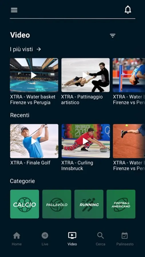Naviga all’interno dell’App e visualizza tutti i video, oppure filtra per categoria o per data.
