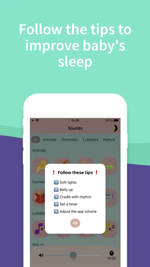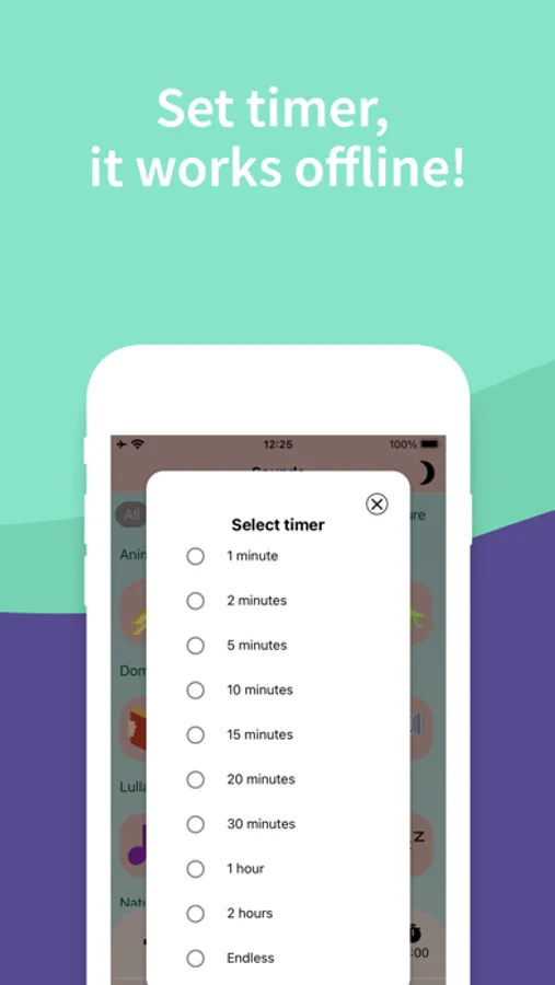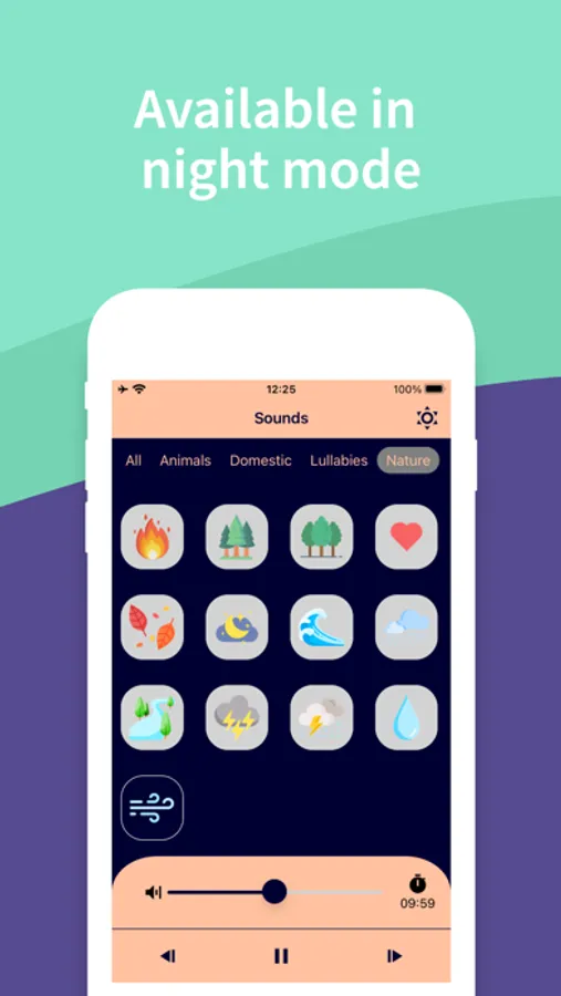 Set the timer, choose the volume and the app will continuously play your favorite sound. As soon as the time runs out, the sound will stop, allowing you to save battery.
