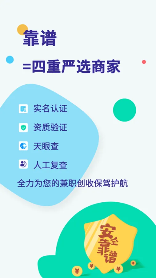 不管是企业还是个人商家,发布工作、项目需求,必须经过至少5层验证:实名认证、资质认证、第三方公信认证、人工复查、根据实际情况现场审查,不定期抽查等,保障每一个商家都是真实可靠有保障的。并且,定期会对用户进行回访,一方面为了确保工作的真实性,保障你的基本权益;更重要的是进步确认商家的真是可靠性,逐步筛选出优质商家,为你自由工作保驾护航。