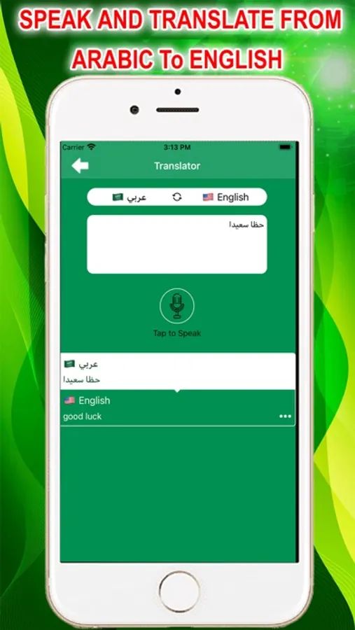 With Voice Translation feature you can translate from arabi to English and English to Arabic with just a click. Translate unlimited voice translations without any cost. Translate on the go with Easy Arabic English Translator.