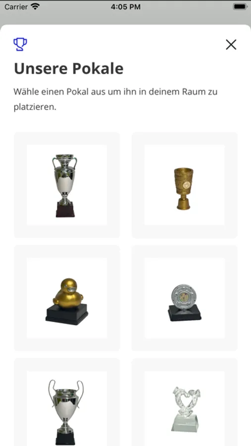 Machen Sie coole Fotos und zaubern Sie mit der Pokal-App einen Pokal Ihrer Wahl über einen Filter in das Bild. Feiern Sie Siege mit den passenden Bildern und teilen Sie diese mit ihren Freunden. Mit der Pokal-App können Sie Pokale Ihrer Wahl in Ihr Wohnzimmer stellen. Gefällt Ihnen das gute Stück so gut, dass Sie es real in den Händen halten wollen? Dann können Sie mit einem Tipp im Shop bestellen. Dort finden Sie eine große Auswahl, um Ihre Helden zu feiern oder zu beschenken.