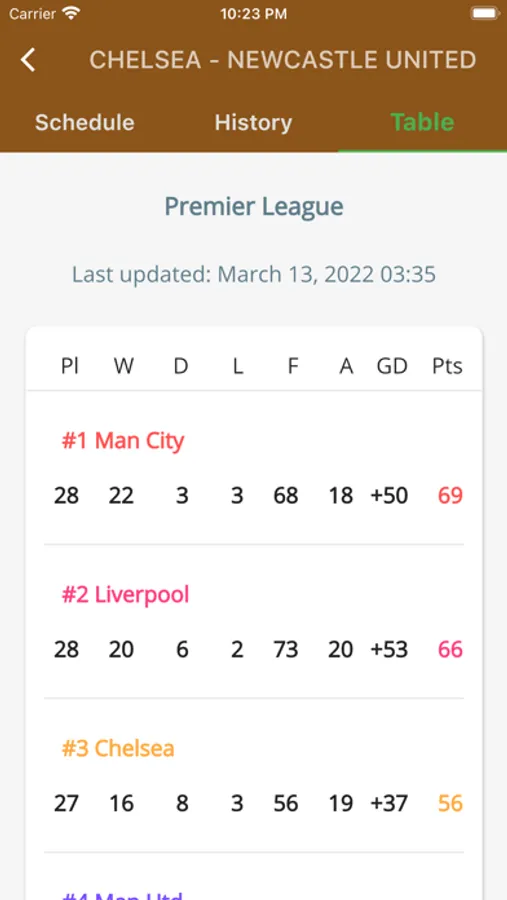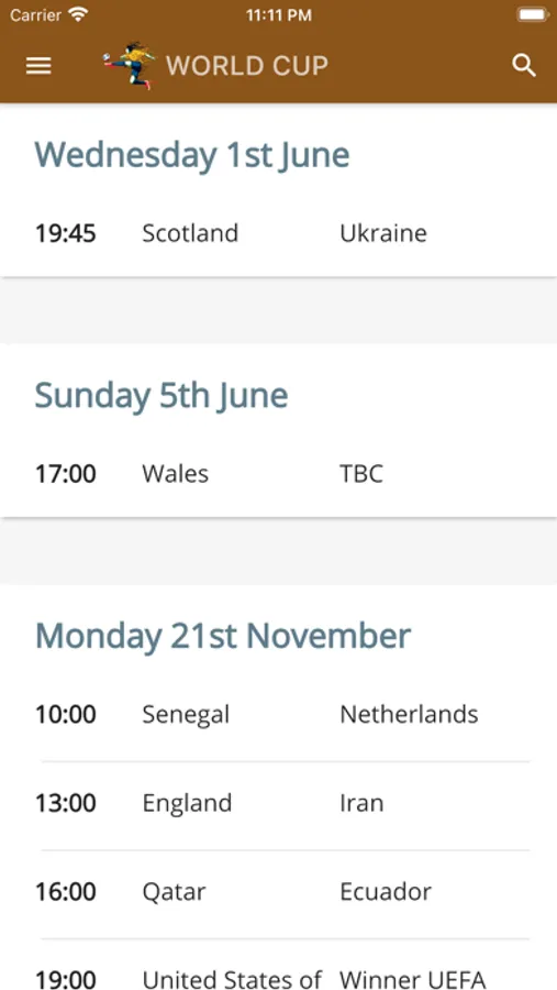 This application is a football schedule application, it helps you to know the football match times and live matches results. You can know today matches, or matches in any specific date