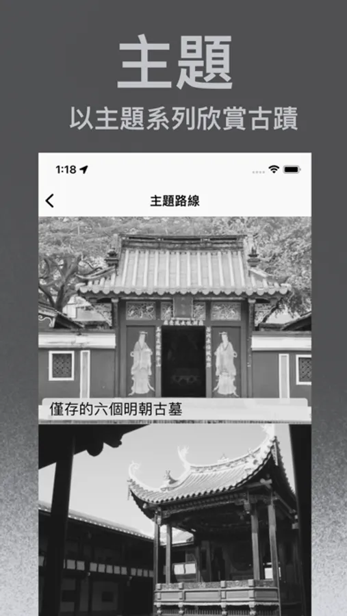 台灣古蹟散步,將政府登錄的古蹟,全部放到你的手機裹。利用地圖定位功能,發現生活周遭的古蹟,閱讀古蹟歷史,了解建築特色,深度認識台灣歷史與文化故事。讓平日的散步有更多的挑戰目標,也讓知識成為散步的一部份,讓自己成為古蹟散步的達人。