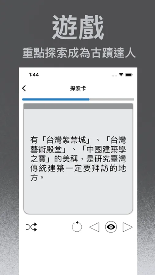6. 以遊戲卡認識古蹟:以卡片的方式認識古蹟,以逐步強化的方式設計卡盒,隨機提供的卡片,在遊戲的過程中,增強對古蹟的記憶與認識,成為台灣的古蹟達人。