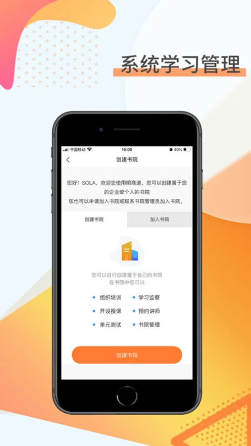 用于组织培训,学习监督,开设授课,预约讲师,书院管理,职业在线学习,提升职业技能