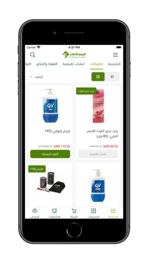 تطبيق متجر الرسيني للأعشاب متخصص في المنتجات الطبيعة والعضوية .