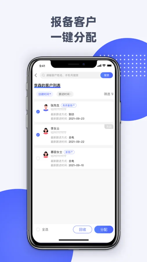 -为销售管理者提供储客分析、跟进数据、业绩管控