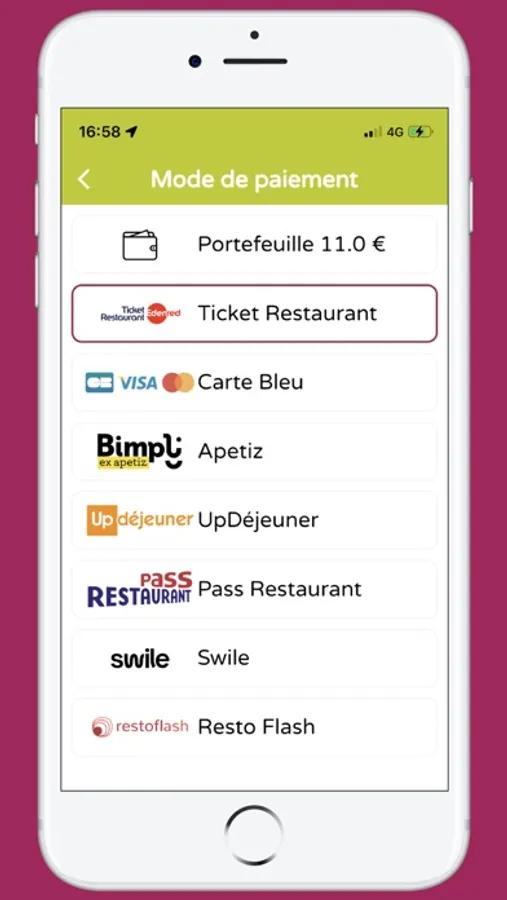 Votre espace personnalisé sur l’application vous permet de choisir votre menu, de passer vos commandes et de les régler en toute simplicité.