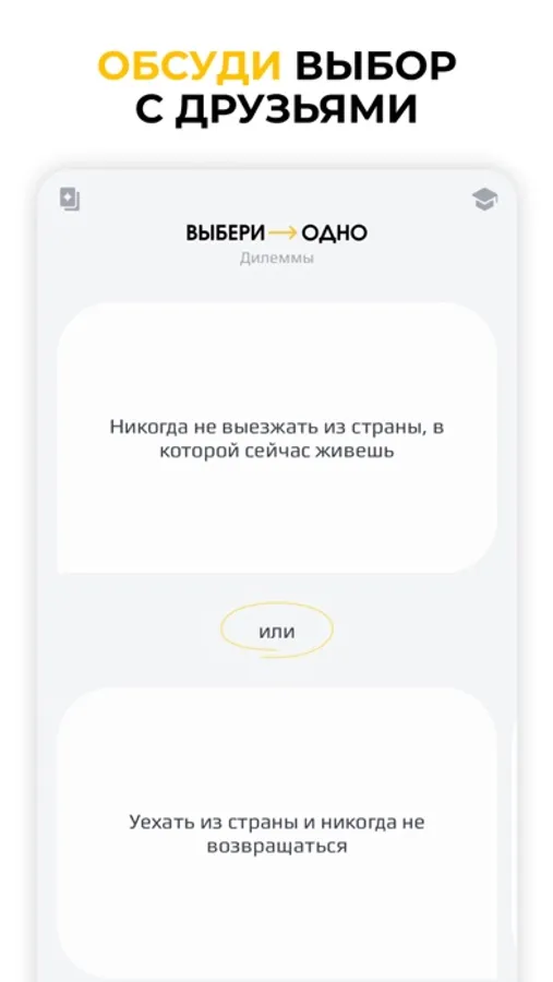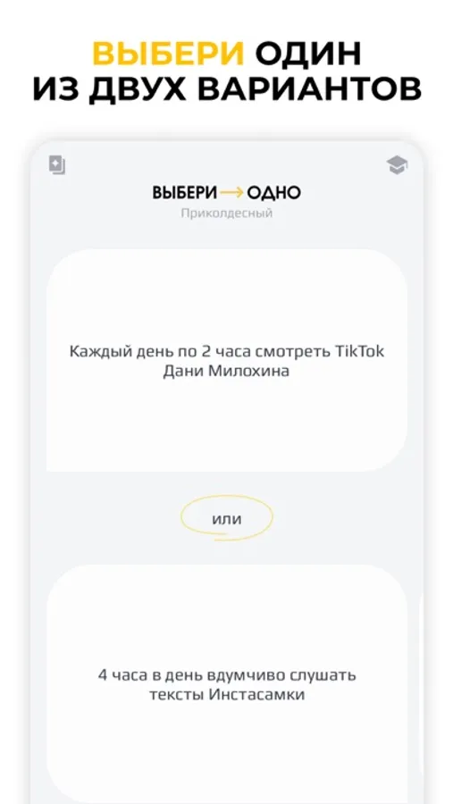 В «Выбери одно» нет баллов, турнирной доски и напряга! Только веселье, только хардкор!
