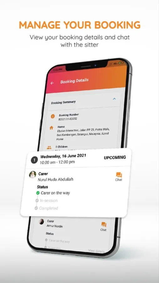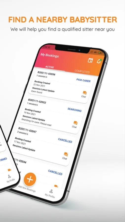 - Parents can communicate with the selected sitter(s) via in-app chat upon confirmation of booking and for the duration of the service.