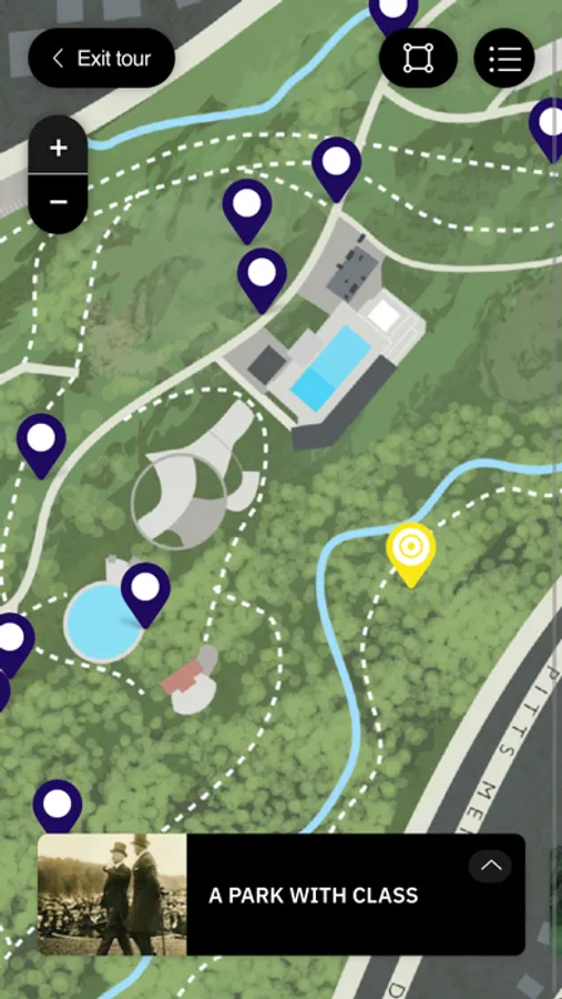 • If you can't get to the park you can take a virtual walk by tapping the different locations on your smartphone screen map.