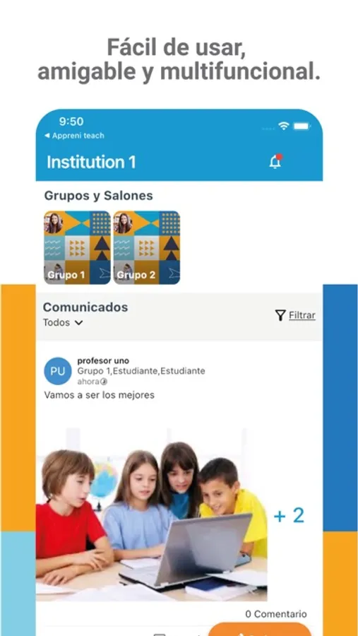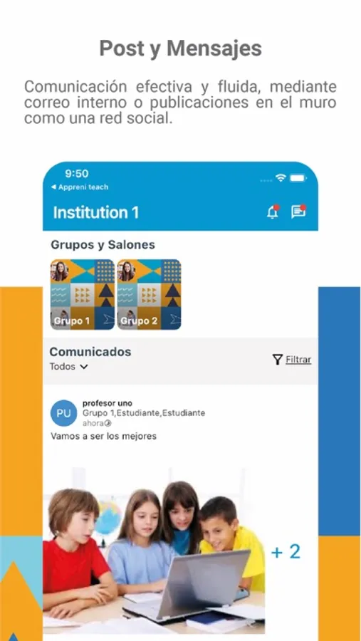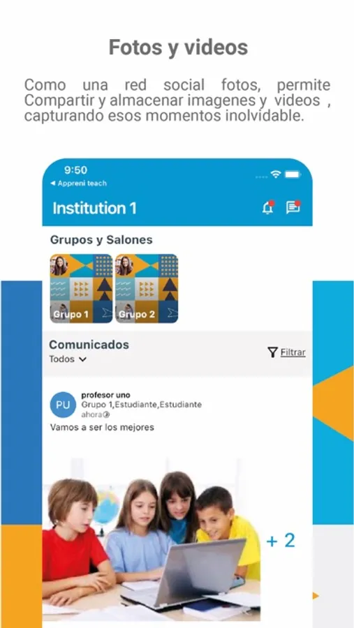 Comunicación efectiva y eficiente en el interior de una institución, comparte, reporta, explora y diviértete, en Appreni puedes visualizar post publicados por la Institución como si fuera una red social, asignación de tareas, creación de eventos, envío de mensajes, visualización de reportes tipo jardín.