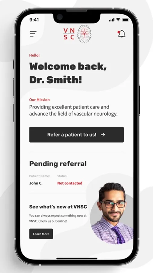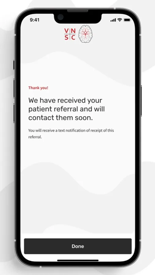 Created by doctors, the VNSC app streamlines patient referrals and provides excellent patient care promptly. The app can be used by a medical professional as well as by a patient for self-referral. All we request is the patient’s contact information and a reason for the appointment. Referring healthcare professionals or patients can choose a VNSC physician based on the diagnosis provided. After the referral is complete, the chosen VNSC physician and the office staff will receive a notification to contact the patient referred and schedule an appointment.