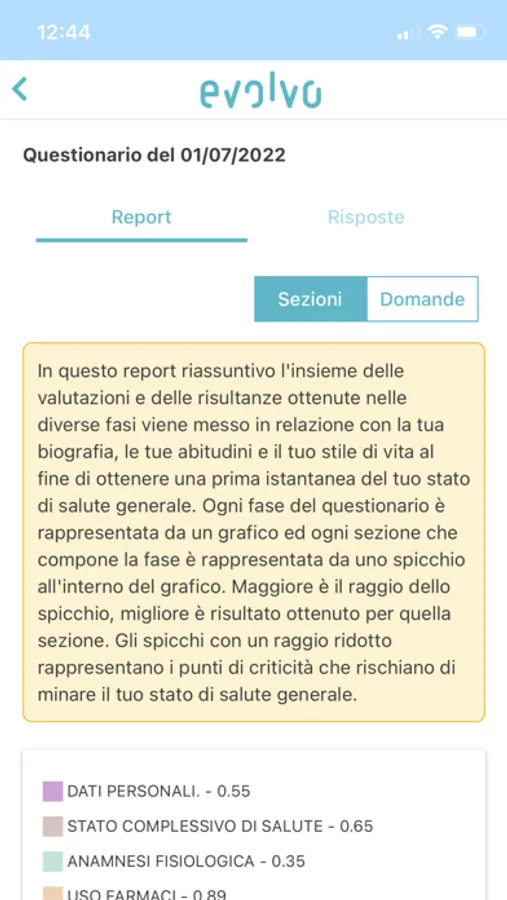 Il questionario evolvo segna da subito la differenza: si va oltre l’anagrafica e insieme ci si appresta a scrivere la prima pagina della tua biografia. L’istantanea che ne scaturisce parla della tua vita: disturbi, preoccupazioni, ma anche aspirazioni, speranze, progetti ed emozioni.