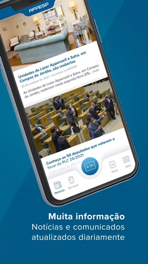 Aplicativo exclusivo aos Associados AFPESP com notícias e comunicados atualizados diariamente e acesso à Carteira Social.