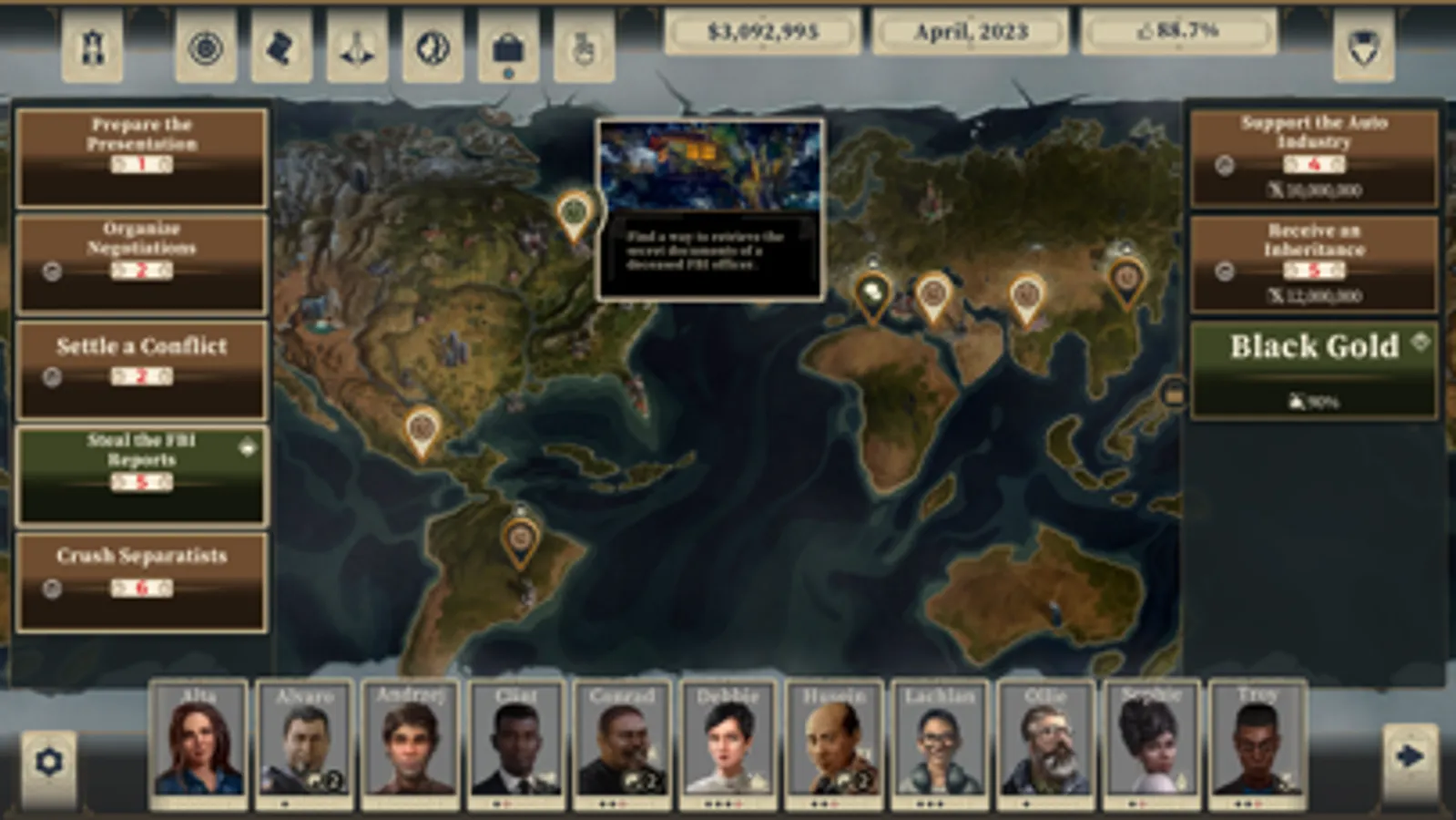 Manage your official and unofficial staff like a real mafioso to deal with all the old problems you’ve had in the past, as well as the shiny new problems that come with the office. You’ll battle with your competitors, the establishment, the media, and even foreign leaders.