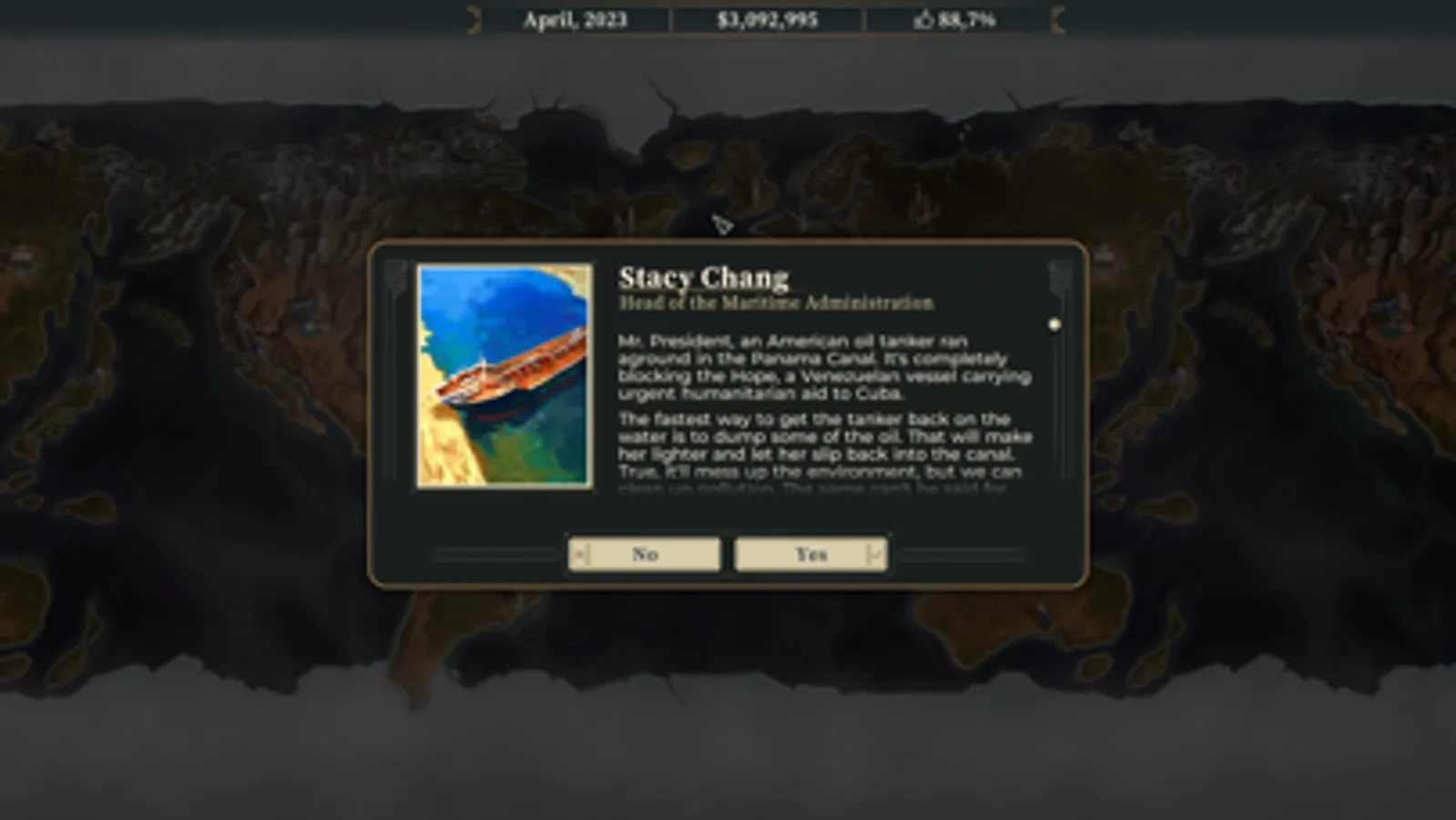 This Is the President is a story-driven management game. In the year 2020, you are elected to be the President of the United States of America. To escape justice for your past crimes as a shady multi-millionaire businessman, you need to ratify Amendment 28 which would grant lifetime immunity to any President.