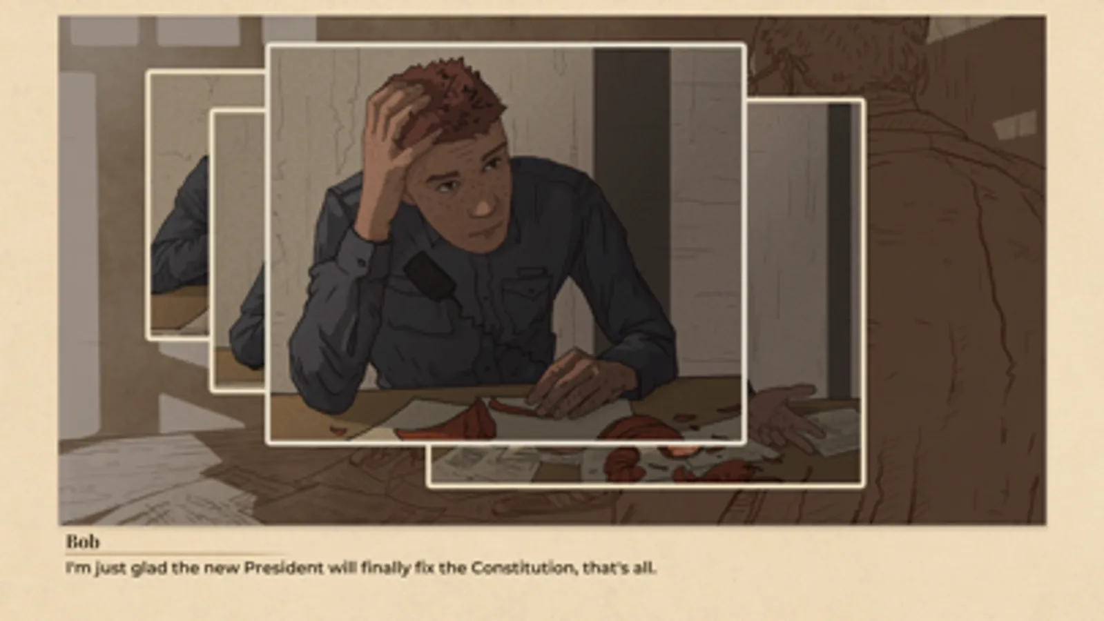 In this political thriller-satire mix, the player's actions will inescapably lead to situations that escalate into absurd, terrifying, tragic, and even ridiculous situations.