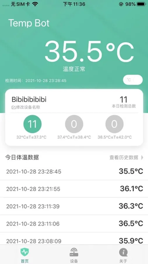 Temp Bot APP Is a utility APP developed for temperature measuring equipment. The device is connected to the APP through Bluetooth, and the detected environment, objects and living objects can be displayed in the APP in real time.