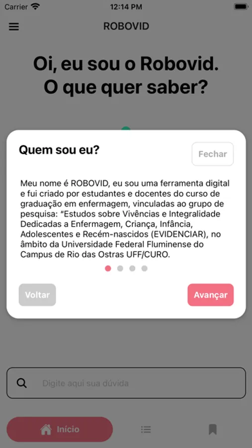 O app tem como objetivo criar um canal de comunicação com a sociedade civil para esclarecer possíveis dúvidas referente a COVID-19, causada pelo novo coronavírus. As informações compartilhadas são atualizadas e foram publicadas pelos órgãos de saúde competentes no Brasil e no mundo que realizam pesquisas sobre a pandemia que estamos enfrentando no momento, causada pelo novo coronavírus.