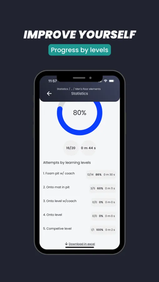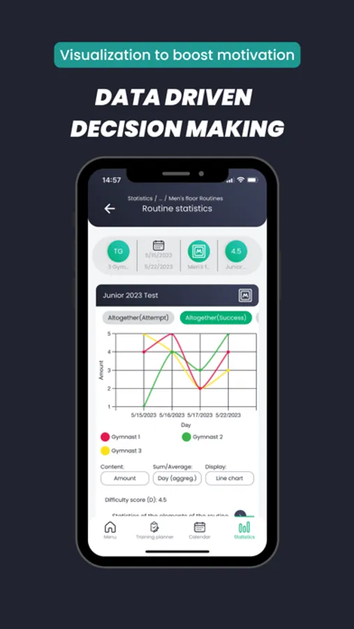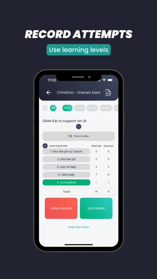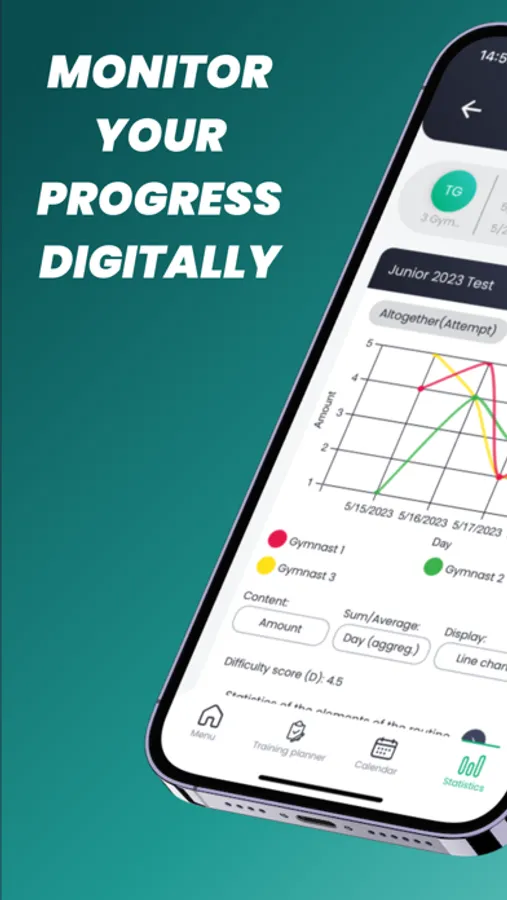 With GymTrack World, you can create personalized training plans that cater specifically to the demands of gymnastics. These plans allow you to track your progress, evaluate each attempt at learning or practicing an element, routine, or exercise, and gain valuable insights into your performance. By providing comprehensive statistics, the app enables you to analyze your daily progress, identify areas for improvement, and ultimately enhance your skills.