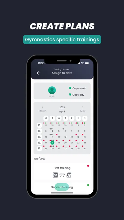 - Personalized training plan creation for gymnasts, coaches, head coaches, and clubs