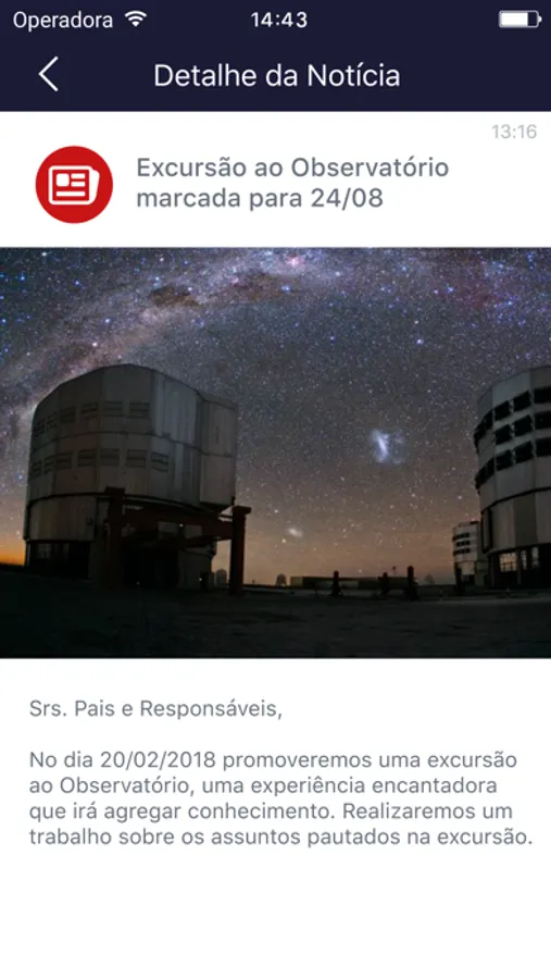 Com este aplicativo, os pais, responsáveis e professores poderão receber as últimas informações da escola, as notícias do dia a dia do seus filhos e o calendário de atividades escolares.