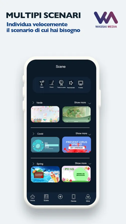 通过手机可一键编辑动态场景,远程管控盒子,内置多种营销玩法