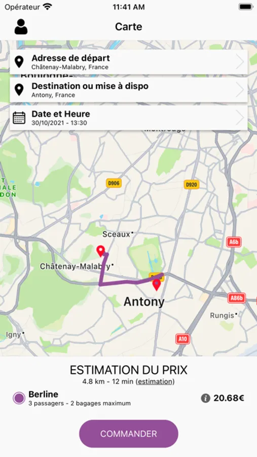 • Saississez vos points de départ et d’arrivée, choisissez votre type de véhicule et estimez le prix de votre course.