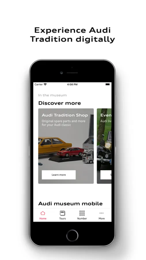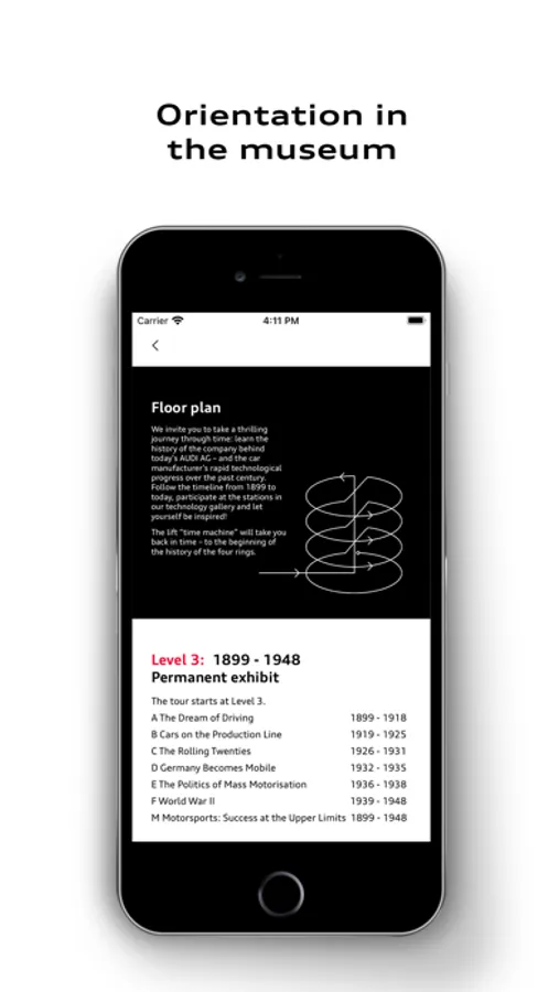 As a digital companion in the Audi museum mobile, the app offers you comprehensive information during your visit in Ingolstadt.