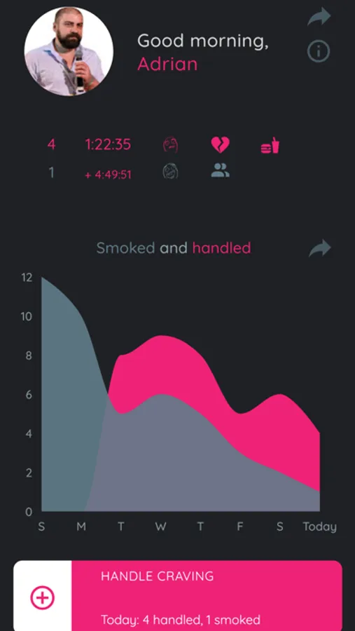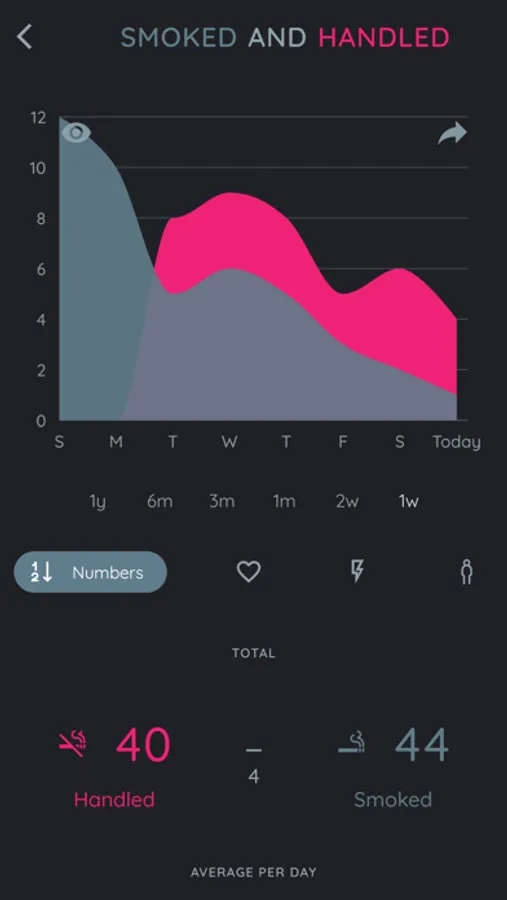 Daily progress: You get a beautiful graph that shows you the count of smoked and and handled cigarettes. You use it to motivate you mind.