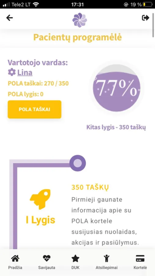 Šį programėlė skirta POLA kortelės turėtojams ir leidžia greitai bei patogiai sekti savo ligos ar gydymo sukeltus nepageidaujamus reiškinius, pasilyginti juos anonimiškai su kitais tos pačios ligos pacientais, gauti simptomų ataskaitą, skaityti mokslu pagrįstus leidinius, gauti POLA naujienas, naudoti virualia POLA kortelę savo telefone, patogiai rasti partnerių nuolaidas ir kitus pasiūlymus, rinkti taškus atsakant į klausimus ir prenumeravus naujienas, bei pirmiems gauti informaciją apie akcijas, renginius, nemokamas specialistų konsultacijas. Daugiau informacijos rasite: https://pola.lt/pagalba-sau/#pola-mobilioji-programele