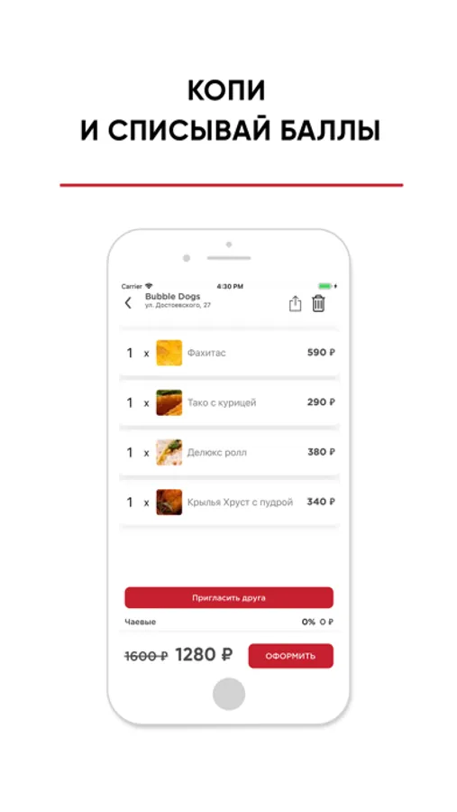 Заказывайте доставку или самовывоз в приложении и получайте кешбэк баллами на следующие заказы.