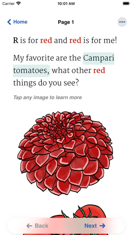 All books on Libri focus on helping young readers discover new facts and concepts, with highlighted words that can be tapped to learn more.