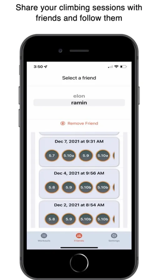 - You can invite friends to follow you and see the grades that you have climbed during each climbing session. You can follow other friends.