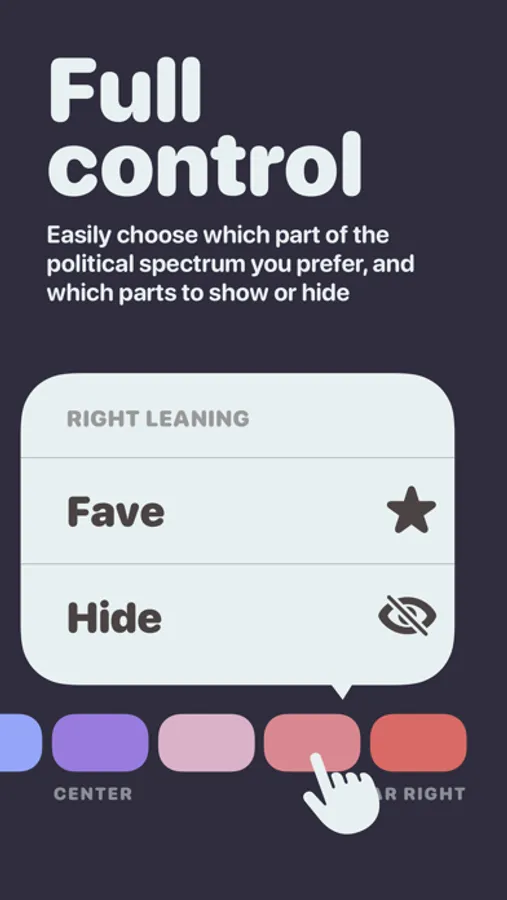 You choose the parts of the political spectrum you are comfortable with — and Xray News will prioritize the viewpoints you prefer, but make it super easy to expand your comfort zone.