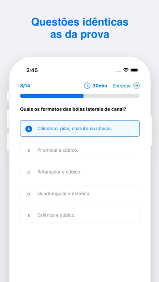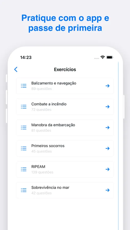 Com o nosso aplicativo, você pode acessar uma ampla variedade de simulados de prova, todos baseados nas questões oficiais da Marinha. Isso significa que você pode ter certeza de que está estudando com as perguntas e respostas mais atualizadas e relevantes.