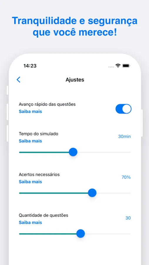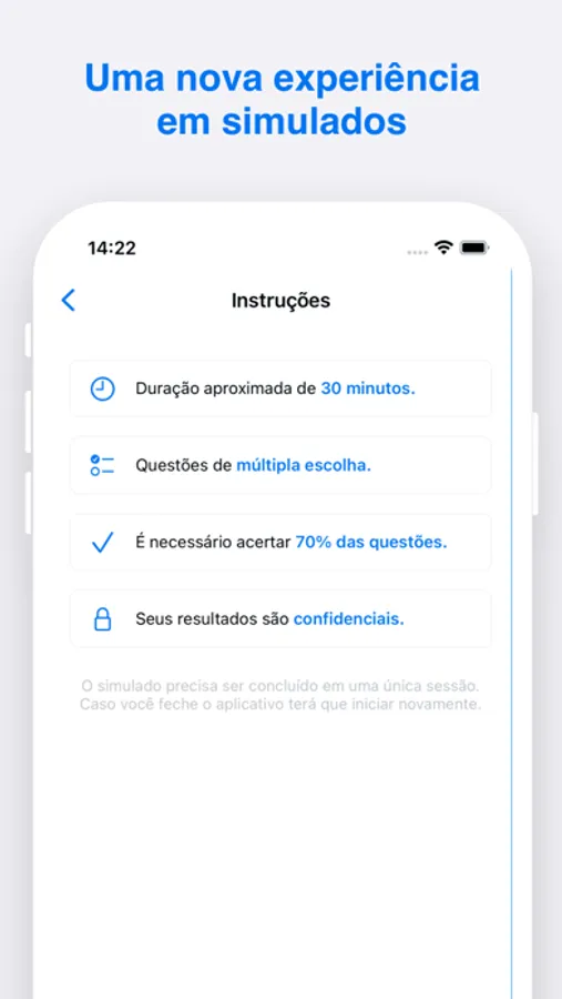 Além disso, nosso aplicativo é extremamente fácil de usar. Com uma interface simples e intuitiva, você pode facilmente navegar pelos simulados e monitorar seu progresso. Você também pode personalizar seus estudos, selecionando o número de perguntas em cada teste e escolhendo as áreas específicas que deseja focar.