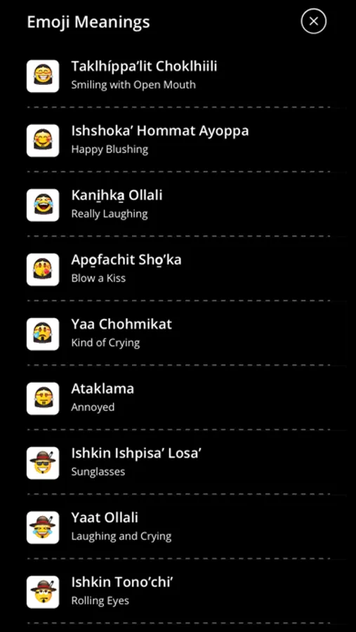 The Chikasha Emoji App incorporates emoji 2.0 designs reinterpreted through a Chickasaw design aesthetic and cultural framework. The emojis also include Chickasaw language textisms which are visual shorthand forms of words and phrases developed by learners of the Chickasaw language for daily use. The Chikasha Emoji App will allow users to include these fun and exciting Chickasaw emojis in their daily communications and interactions on mobile devices, social media, and the world wide web. For more on the history, culture, and language of the Chickasaw people see www.chickasaw.net, www.chickasaw.tv, www.chickasawlanguage.com, www.achickasawdictionary.com, and The Chickasaw Nation Culture and Humanities channel on YouTube.