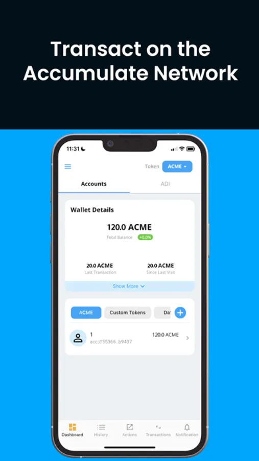 The Accumulate Wallet allows you to secure, manage, and transact with Accumulate’s native token ACME. The wallet currently transacts on Accumulate’s testnet.