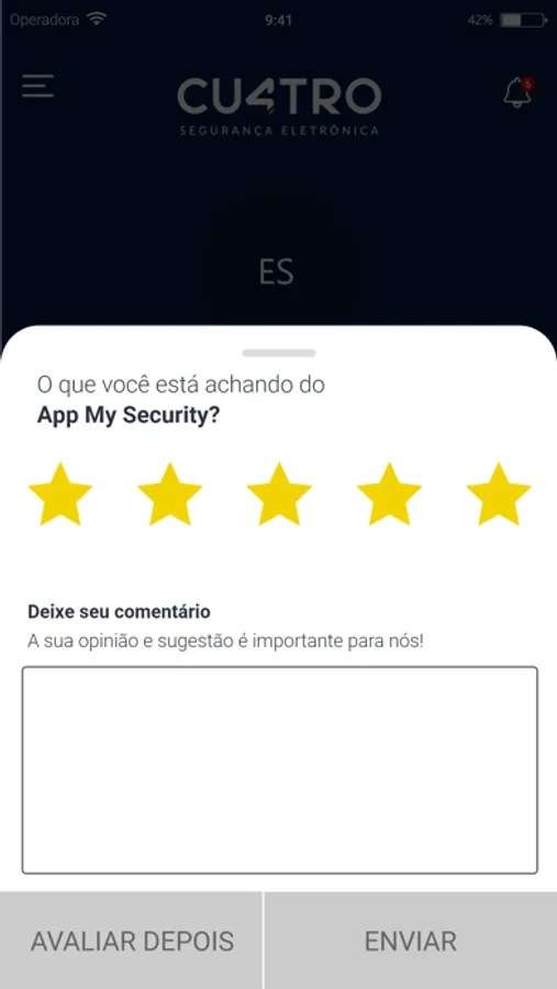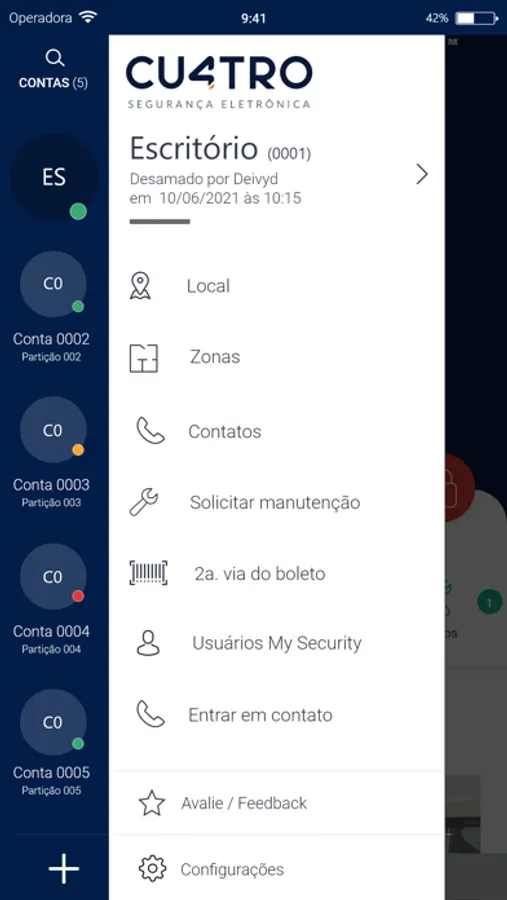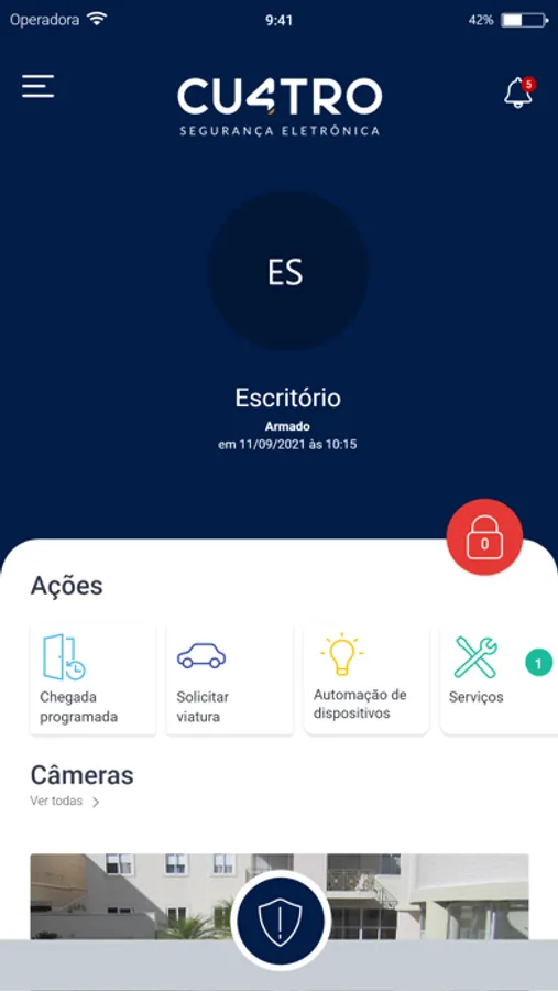 Utilize seu smartphone para abertura de portas, ativação e desativação do alarme, além de outras notificações. CUATRO Automação é segurança com comodidade na palma da sua mão.