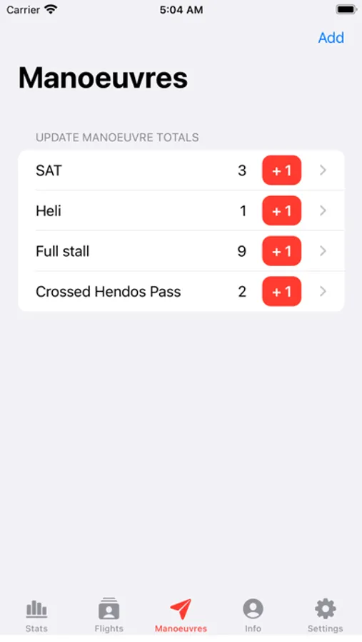 - Log Manouvres (easy one tap to update total)