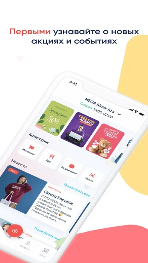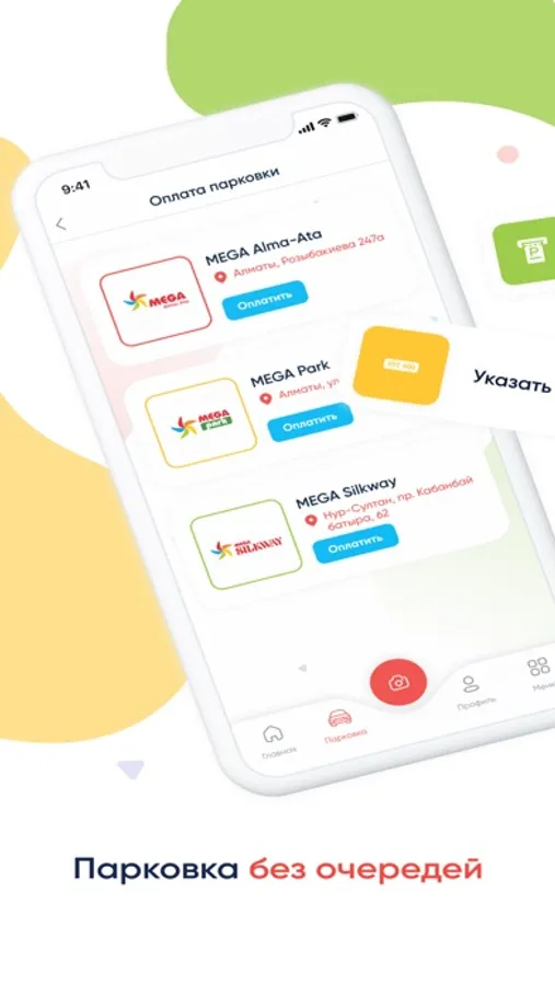 Приложение для семейства Мега для оплаты парковки, накапливание бонусов, бронирования билетов в кинотеатр и многого другого